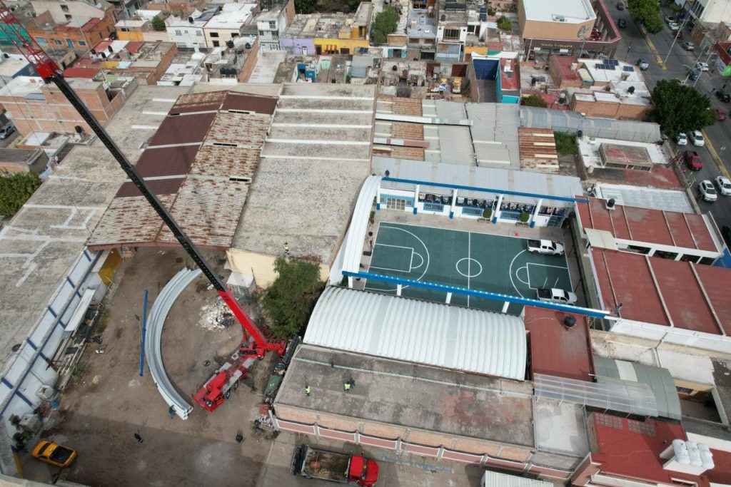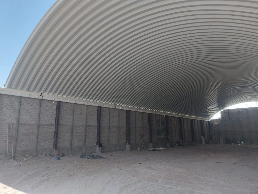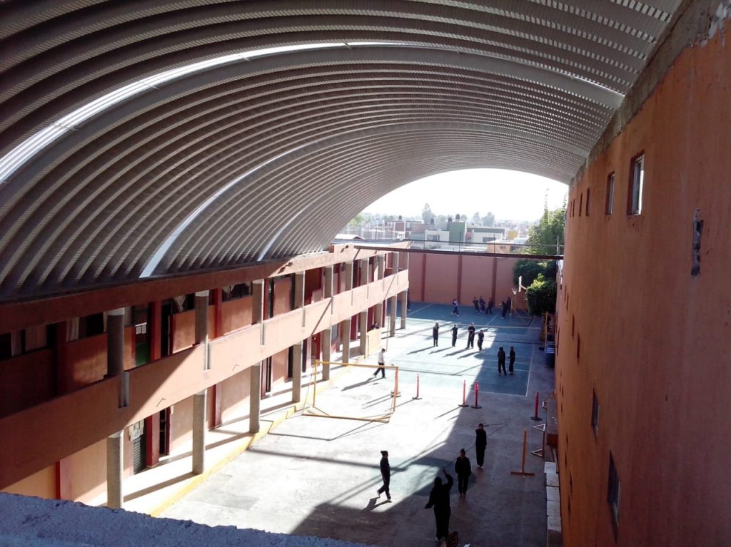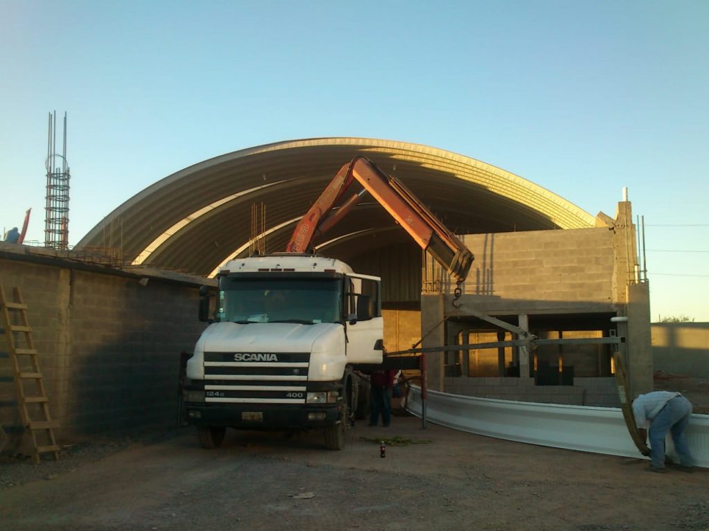 Sistema de cubierta a base de láminas de una sola pieza fabricada a pie de obra por una roladora portátil, fijadas en cada extremo con taquete expansivo y engargolado lateral continuo con equipo eléctrico.